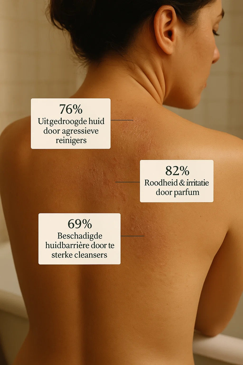 ❌ Agressieve schuimmiddelen beschadigen de huidbarrière